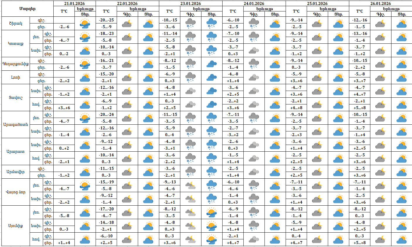 ԱՌԱՋԻԿԱ 5 ՕՐՎԱ ԵՂԱՆԱԿԻ ԿԱՆԽԱՏԵՍՈՒՄ (21 -26.01.2026թ.)