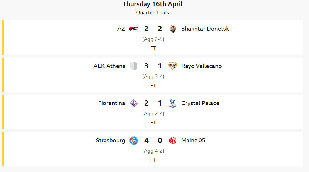 Գիշերը տեղի ունեցան ՈՒԵՖԱ-ի Եվրոպայի լիգայի և Կոնֆերենցիայի լիգայի քառորդ եզրափակիչների պատասխան հանդիպումները։