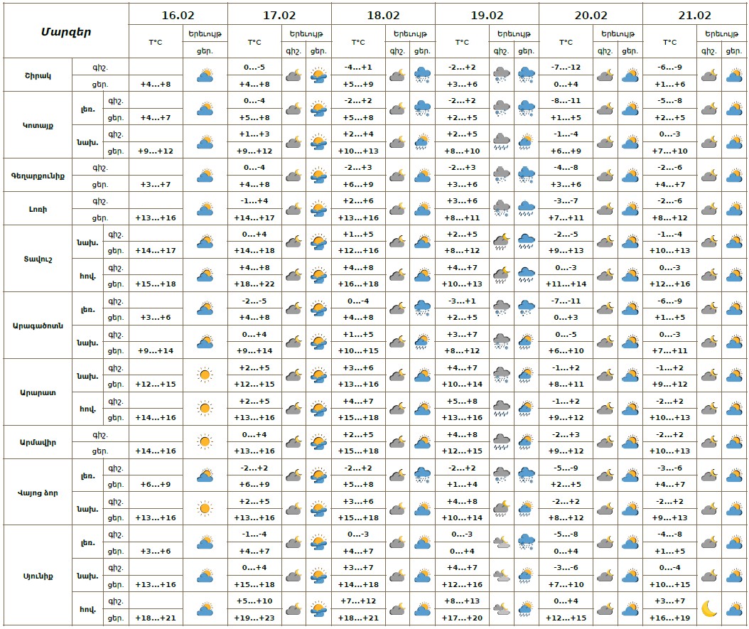 ԱՌԱՋԻԿԱ 5 ՕՐՎԱ ԵՂԱՆԱԿԻ ԿԱՆԽԱՏԵՍՈՒՄ (16.02-21.02.2026թ.)