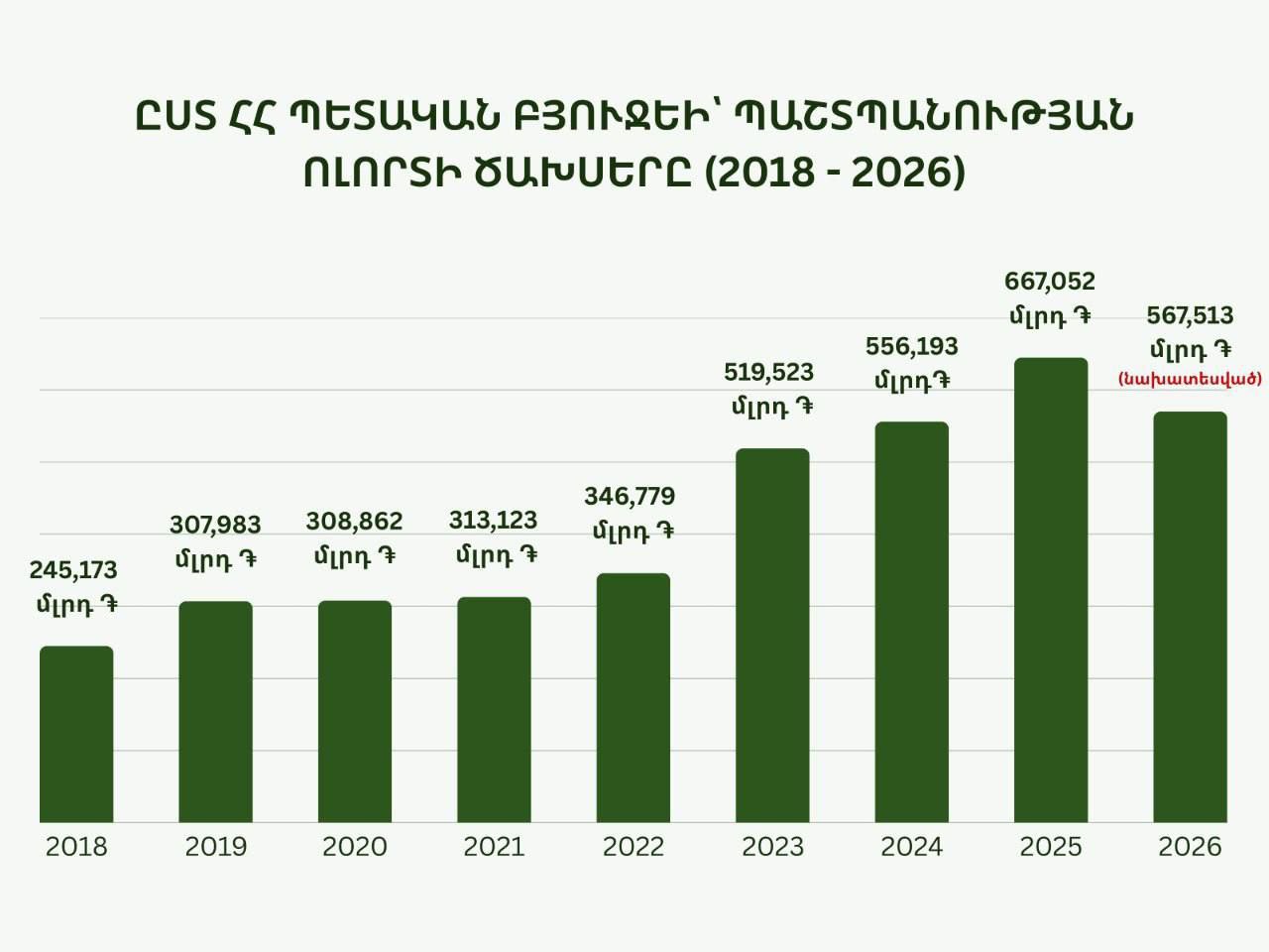 Պաշտպանության ոլորտի ծախսերը (2018-2026 թթ.)՝ դրամային և դոլարային արտահայտությամբ