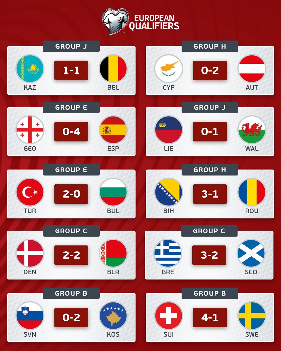 Աշխարհի առաջնության ընտրական փուլ - ՈւԵՖԱ, խմբային փուլի հերթական արդյունքները