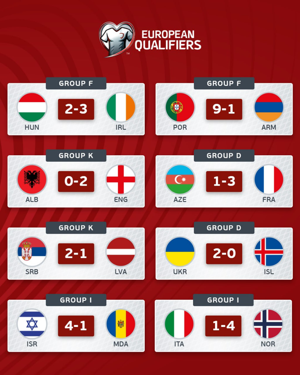 Աշխարհի առաջնության ընտրական փուլ - ՈւԵՖԱ, խմբային փուլի հերթական արդյունքները